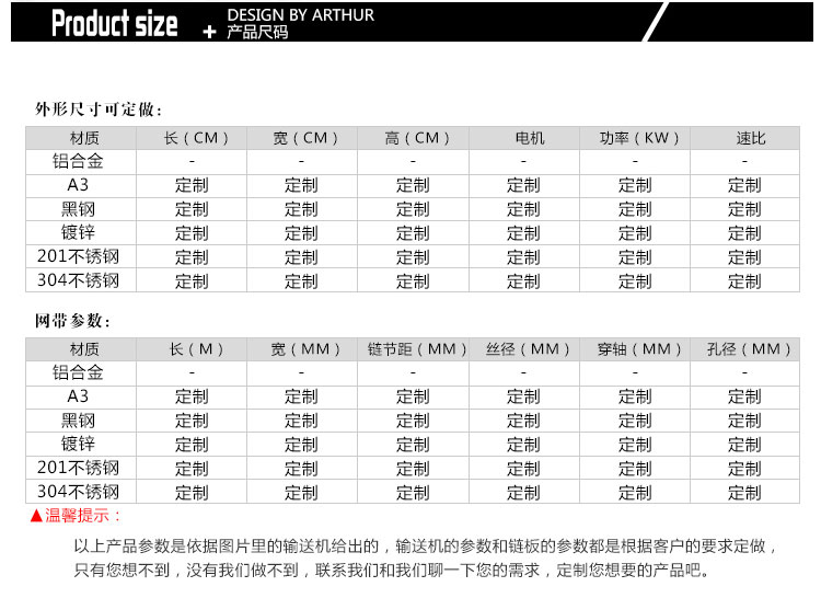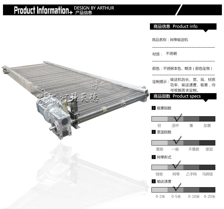 可根據(jù)客戶需求進行設計私人訂制,如果您需要更詳細的網(wǎng)帶輸送機/食品網(wǎng)帶輸送機/網(wǎng)帶輸送線/網(wǎng)帶流水線產(chǎn)品信息,解決方案和報價,請聯(lián)系客服,我們會為您提供熱情的服務。