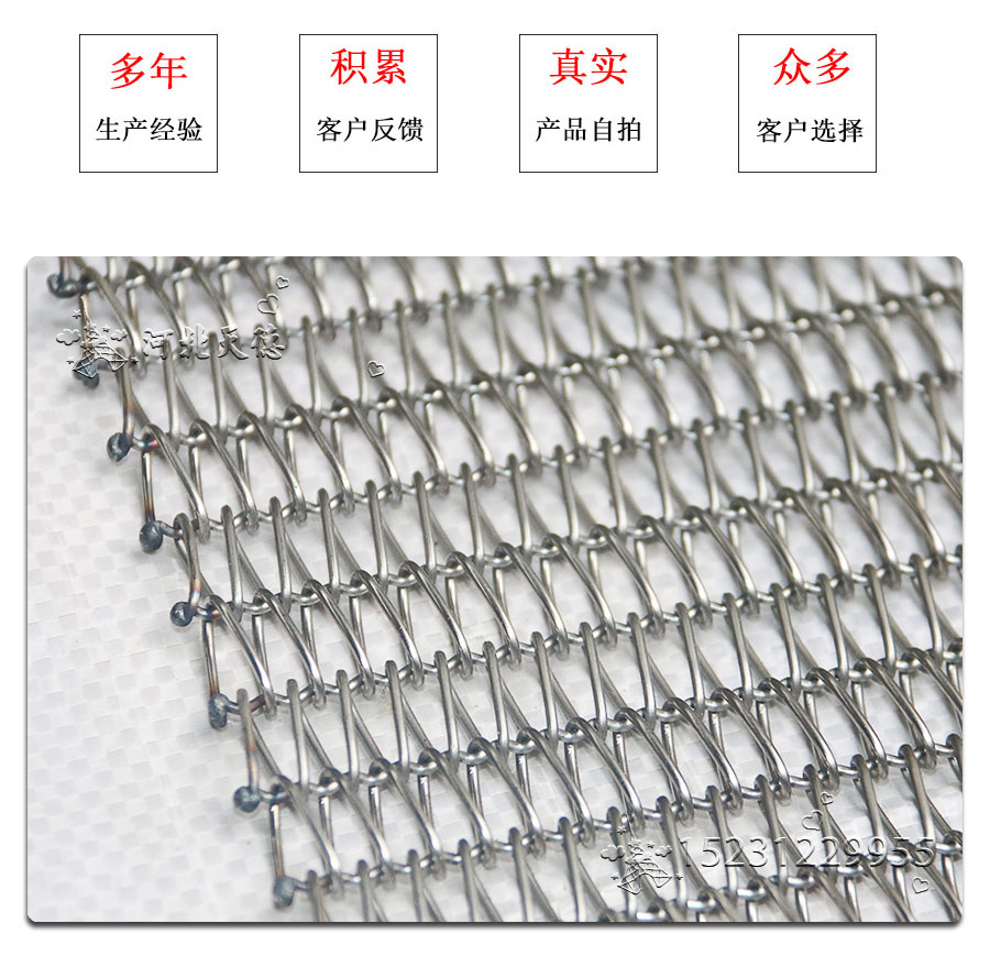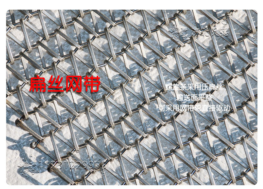 曲軸型:集中了金屬絲編織網帶的各種優點,由于具有彎曲較深的串條,使各個螺旋盤條的位置正確的定位,因此減少網帶的變型和延伸。