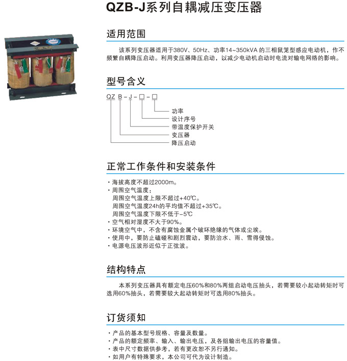 QZB-J系列自耦減壓變壓器