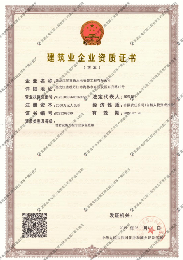 建筑業企業資質證書消防